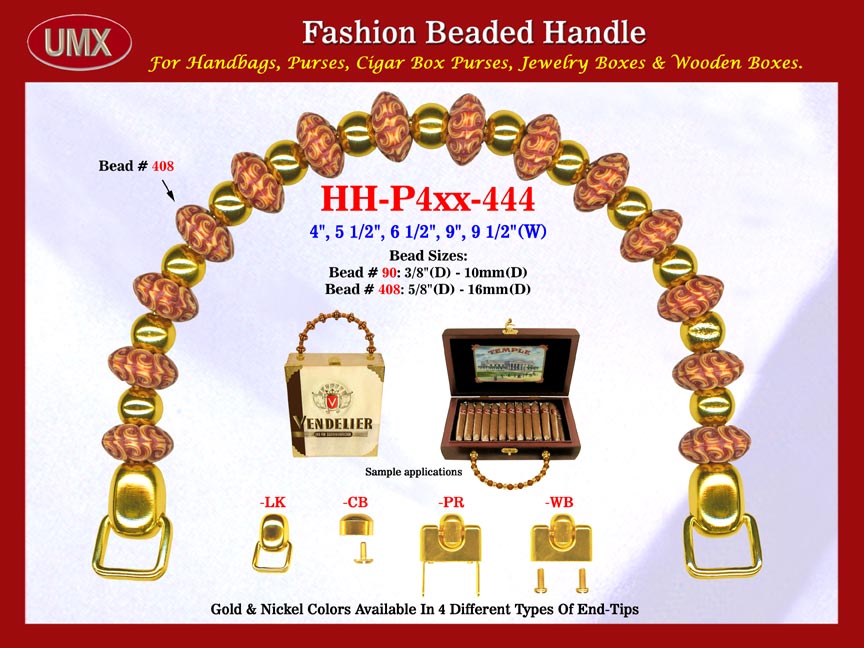 HH-P4xx-444 Beaded Handbag Handle: With Carved Rondelle Saucer Beads.