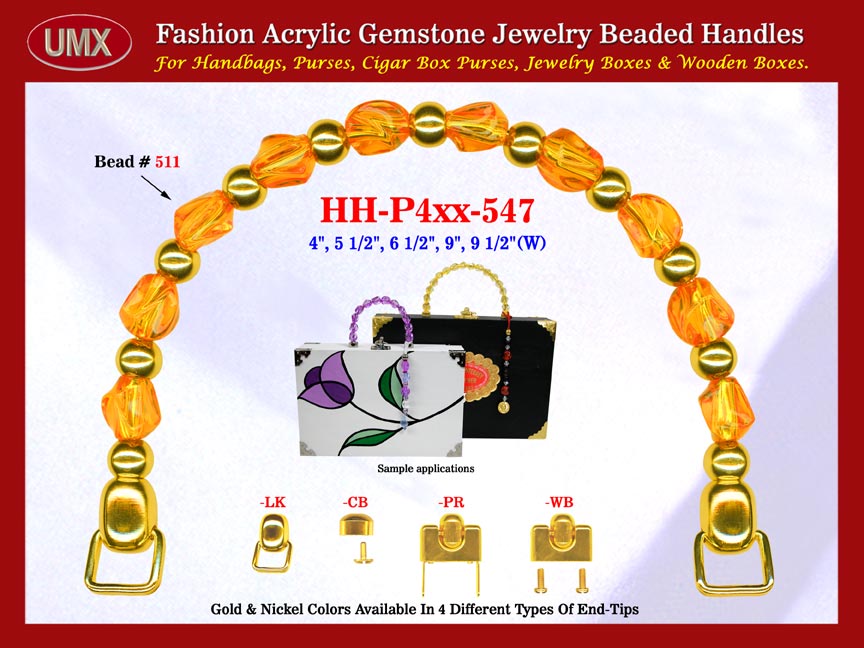 HH-P4xx-547 Beaded Handbag Handle: Tangerine Jewelry Beads - Acrylic Tangerine Beads
