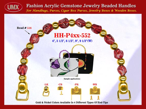 HH-P4xx-552 Beaded Handbag Handle: Garnet Jewelry Beads - Acrylic Garnet Beads
