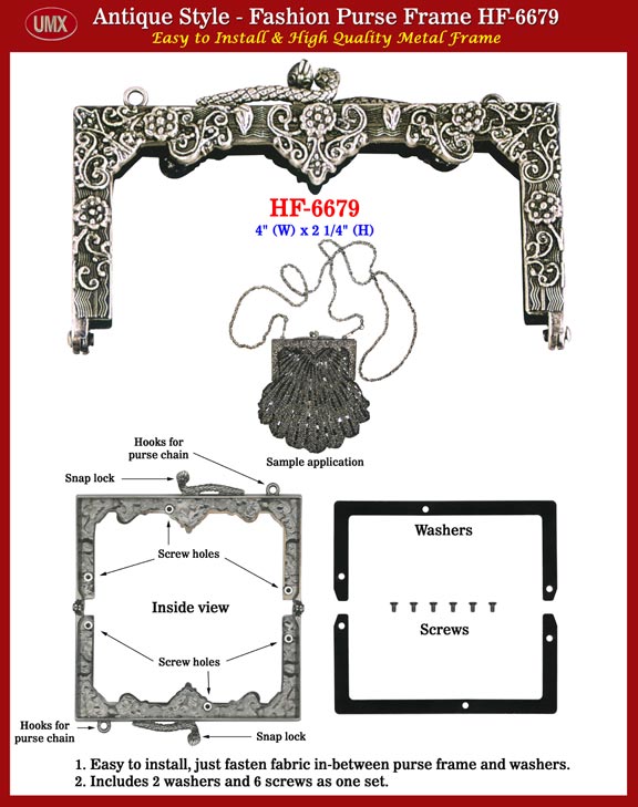 This is a high quality antique style purse frame, an easy to install purse frame series. It comes with screws for your convenience.